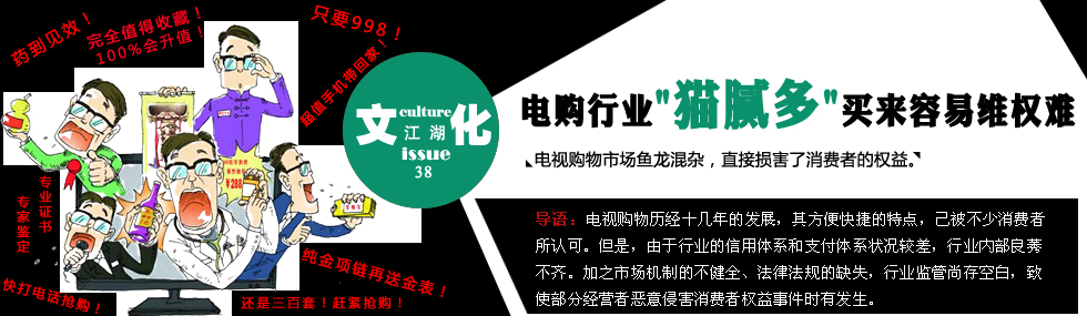 電視購物在快速發展的同時,弊端也逐漸暴露。虛假宣傳、牟取暴利、質量和服務、行業自律及監管是當前電視購物所存在的問題。對于此,一些被忽悠過的消費者是深有感觸,一些不良商家在電視上說得天花亂墜,真實產品卻大相徑庭,甚至還可能是假冒偽劣產品。而電話訂購的方式,又使消費者無法得知其法人名稱、地址,造成后期維權舉證困難。