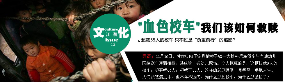 悲劇已經發生。只盼對校車事故的反思,能夠將人們的目光和思考,引向它所行駛于其上的那片依然貧瘠的土地。在這些校車上滿載著的,不僅僅是孩子,更有著基層農村的痛苦和社會的頑疾。