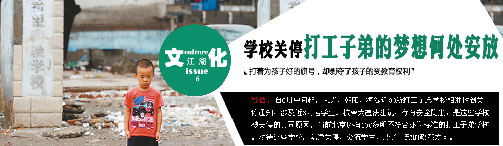 對于這場大規模的“教育拆遷”,北京市教委給出的理由是打工子弟學校存在非法辦學的現象。誠然,非法辦學確實應該予以取締,但前提是學生得到妥善的安置,受教育的權利得到有效的保障。行政權力以“一刀切”的方式,貿然關停打工子弟學校,打擊非法辦學的同時,也是在放逐3萬多打工子弟接受義務教育的權利。拆毀打工子弟學校,實際上也是在拆毀打工子弟的上學夢。面對失去故鄉的打工子弟,我們不能再讓他們的權利被放逐,城市里理應有一張屬于他們的書桌。被驅逐的教育權利何處安放?除了職能部門的有力保障和合理安置,更需要對社會力量進行規范引導,讓其成為填補權利空白的有生力量。