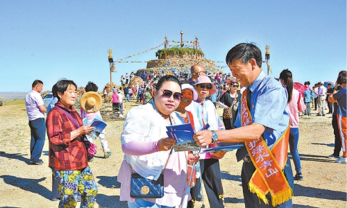 潘志榮向牧民發放法律知識宣傳冊。王媛攝