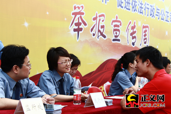 正義網北京6月22日電(見習記者楊征)昨天上午 北京市檢一分院、西城檢察院、市檢二分院、東城檢察院舉辦舉報宣傳周活動,北京市慕平檢察長參加活動,并熱情接待前來咨詢法律問題的群眾。