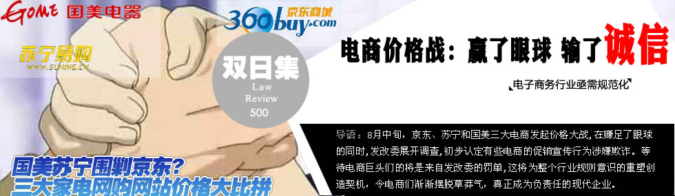 8月15日,一場“史上最慘烈”的電商大戰在全國打響!京東商城與蘇寧易購為交戰雙方,國美電器等數家電商相繼卷入。9月5日,發改委價監局初步調查認為,有電商在價格戰過程中存在涉嫌價格欺詐行為。京東商城公開致歉,并表示將“以此為戒,深刻反省”。