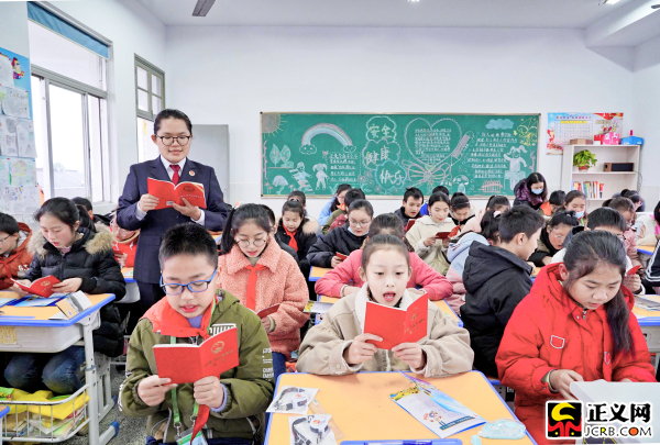 正義網(wǎng)常州11月30日電(通訊員孫忠玲)為迎接第七個國家憲法日和第三個憲法宣傳周,11月27日,江蘇省常州市金壇區(qū)人民檢察院干警來到岸頭小學(xué)開展憲法宣傳活動。活動中,檢察官深入淺出地講解憲法的有關(guān)知識,帶領(lǐng)孩子們齊聲誦讀憲法中保護(hù)未成年人的部分內(nèi)容,還為孩子們上了一堂預(yù)防性侵的法治教育課。