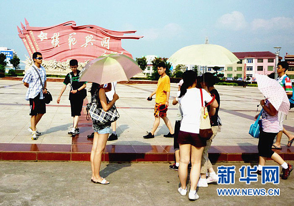 今年是中國共產黨建黨90周年,紅色旅游人數遠遠超過去年同期。這是游客參觀江西興國縣開國將軍紀念館。新華網發(徐春來 攝)