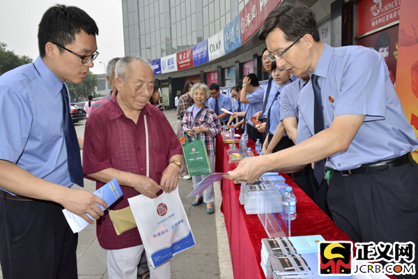 正義網(wǎng)北京6月24日電(記者 程丁 通訊員 張瑋)6月24日,第十七個“舉報宣傳周”期間,在北京市檢察院的指導下北京市檢察院第四分院聯(lián)合海淀區(qū)檢察院在北京城鄉(xiāng)貿(mào)易中心前廣場開展普法宣傳活動。