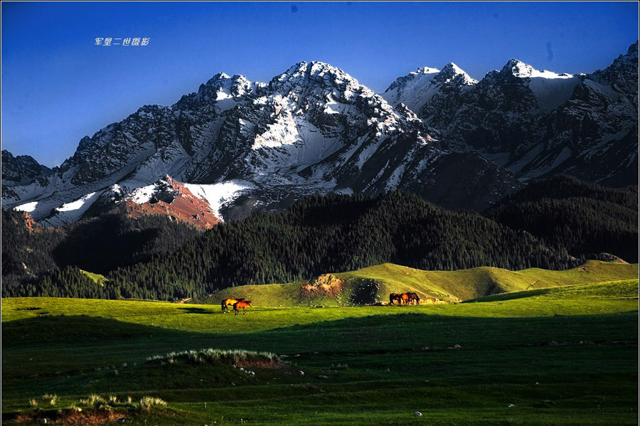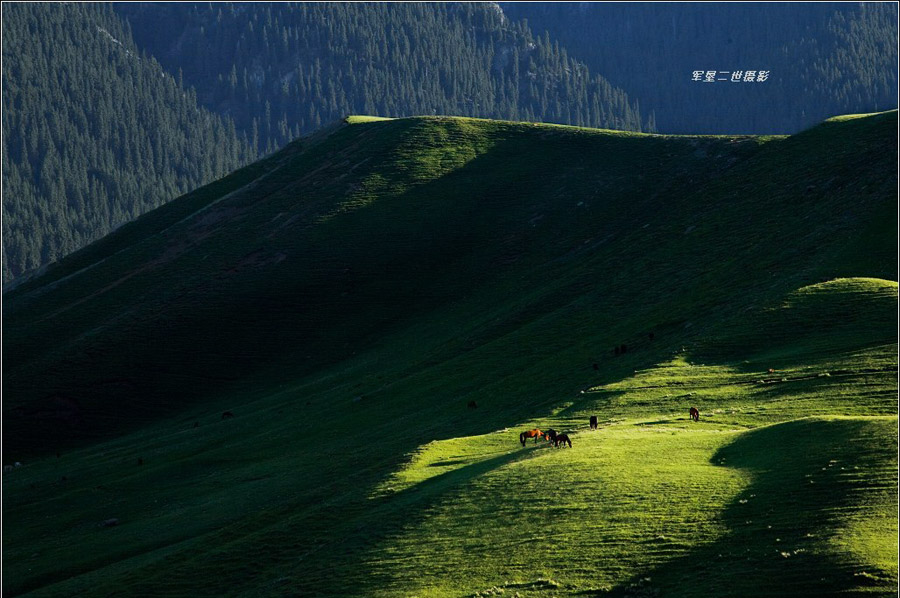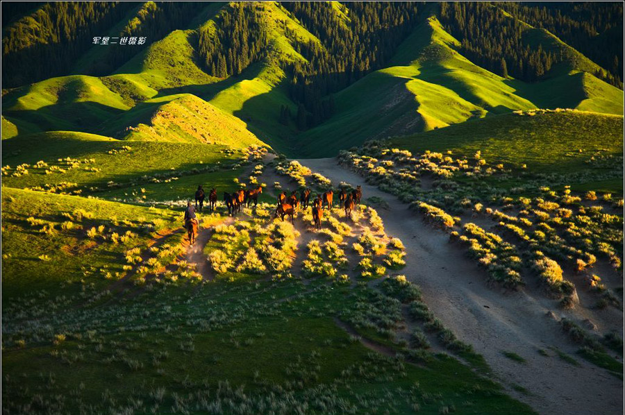 天山山脈把新疆分成兩部分:南邊是塔里木盆地;北邊是準(zhǔn)噶爾盆地。準(zhǔn)噶爾盆地西北邊緣的山地不很高,而且有很多缺口,大西洋、北冰洋的氣流能夠進(jìn)入,所以氣候比較濕潤,這里的草場優(yōu)良,畜牧業(yè)發(fā)達(dá)。(圖片來源:地理論壇,作者:軍墾二世)