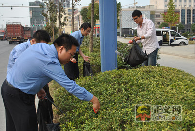 該院“學(xué)雷鋒志愿者服務(wù)隊(duì)”正在開(kāi)展垃圾清掃。 王彬攝