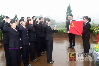 華鎣檢察官在革命烈士紀(jì)念碑前重溫入黨誓詞.