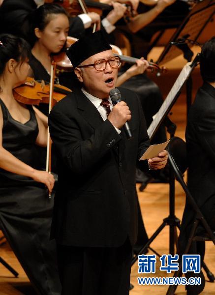 6月30日晚,著名表演藝術家許還山朗誦英雄詩人陳輝的作品《為祖國而歌》。當日,為慶祝中國共產黨成立90周年,《獻給黨的生日——七月》朗誦交響合唱音樂會在西安音樂廳上演。本次音樂會匯集了著名表演藝術家許還山、張家聲、吳京安以及著名配音演員方明、丁建華、喬榛等,一批愛國文學代表作品如毛澤東的《沁園春·雪》、李大釗的《新紀元》、方志敏的《可愛的中國》等在這場音樂會上得到完美演繹。新華社記者 李一博 攝