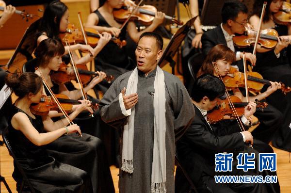 6月30日晚,著名演員吳京安朗誦李大釗作品《新紀元》。當日,為慶祝中國共產黨成立90周年,《獻給黨的生日——七月》朗誦交響合唱音樂會在西安音樂廳上演。本次音樂會匯集了著名表演藝術家許還山、張家聲、吳京安以及著名配音演員方明、丁建華、喬榛等,一批愛國文學代表作品如毛澤東的《沁園春·雪》、李大釗的《新紀元》、方志敏的《可愛的中國》等在這場音樂會上得到完美演繹。新華社記者 李一博 攝