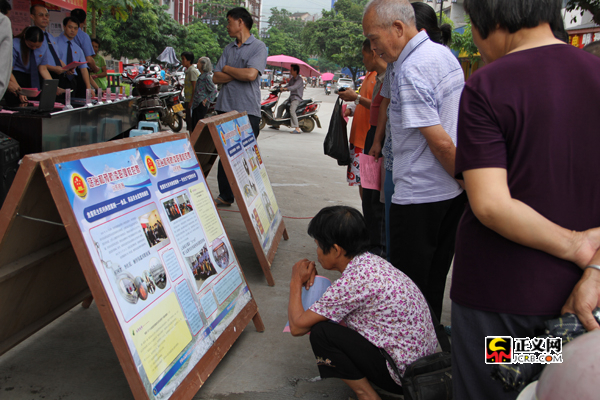 隨著時間的推移,周圍的群眾也漸漸地聚攏過來,準(zhǔn)備工作還沒做好,周圍的群眾已經(jīng)把展板圍了一圈。展板前,有蹲著看的,有站著看的,有熱烈討論的,還有臨時停車下來一探究竟的。