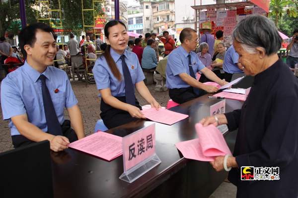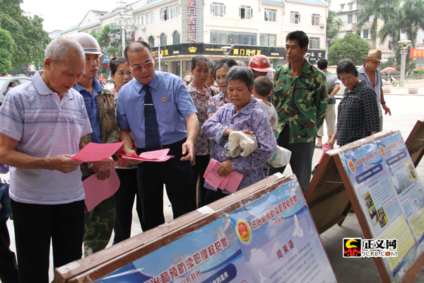 迎著群眾高漲的情緒,參加活動的檢察干警迅速打開電腦,播放使用當(dāng)?shù)胤窖凿浿频男麄麂浺?進(jìn)一步營造良好的宣傳氛圍。接著,干警們開始散發(fā)資料、解答疑惑、記錄情況。看到有群眾略顯羞澀,不敢過來索取資料的,年輕的檢察人員主動把資料給遞過去。有要咨詢問訊或反映情況的,參加活動的院領(lǐng)導(dǎo)熱情地接待了他們,及時處理他們的問題。