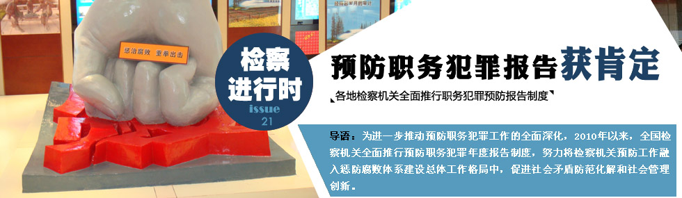 預防職務犯罪年度報告制度,已成為檢察機關貫徹黨中央反腐敗方針,全面推進懲防腐敗體系建設和社會管理創新的重要工作,成為落實最高人民檢察院在更高起點、更高層次、更高水平上加強和改進職務犯罪預防工作要求的重要舉措,成為向黨委、人大、政府和社會各界全面展示預防職務犯罪工作能力、水平,提升預防工作質量的重要途徑。