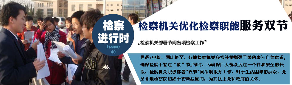 中秋國慶"雙節"將至,為確保廣大人民群眾度過一個快樂安詳的"雙節"假期,各地檢察機關積極部署做好雙節間的法制服務工作。