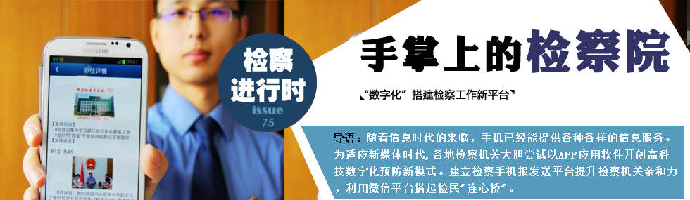 為進一步深化檢務公開,各地檢察機關著力強化信息化手段,建立了檢察手機報的發送平臺,向人大代表、政協委員等各界人士發送檢察手機報。不斷提升檢察機關的親和力和社會認知度。