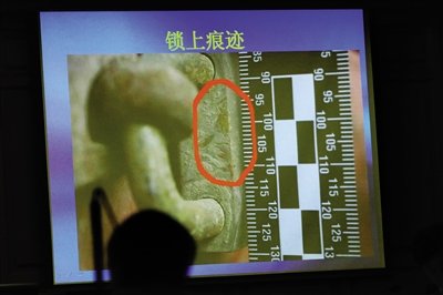 石柏魁用故宮內(nèi)的一根鐵棍,前往誠(chéng)肅殿門口撬鎖,但多次努力未果后放棄,現(xiàn)場(chǎng)留下撬鎖的痕跡。