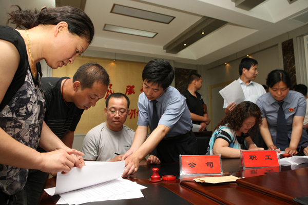 5月27日,山東省聊城市東昌府區(qū)檢察院內(nèi),一場歷時三載的群體性勞動爭議案件在該院民行干警的調(diào)解下成功實現(xiàn)和解——該院辦理的付智遠等十五件勞動爭議申訴案雙方當事人在檢察機關的監(jiān)督下,在和解協(xié)議上簽字。根據(jù)協(xié)議中規(guī)定:公司為職工補繳養(yǎng)老、醫(yī)療等各項保險費共計三十七萬余元,繳清后申訴人自愿不再申訴,目前,公司已將各項保險費已交付到位。該案是今年來東昌府區(qū)檢察院通過和解手段化解的又一起民事申訴案件。