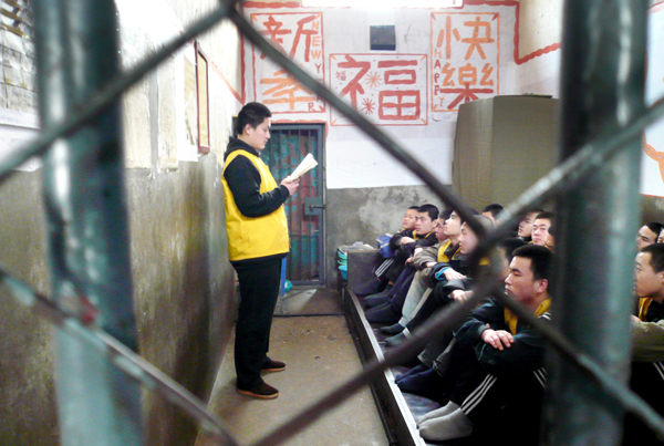 2009年2月13日,為了幫助教育大墻內的在押未成年人,北京市海淀區檢察院監所處和海淀看守所為大墻內的每個未成年監室安排了一名在押人員擔任教師,每天給孩子們講授文化知識,取得很好的社會效果。此圖片為在押教師給未成年人上課,他們在專心聽講。