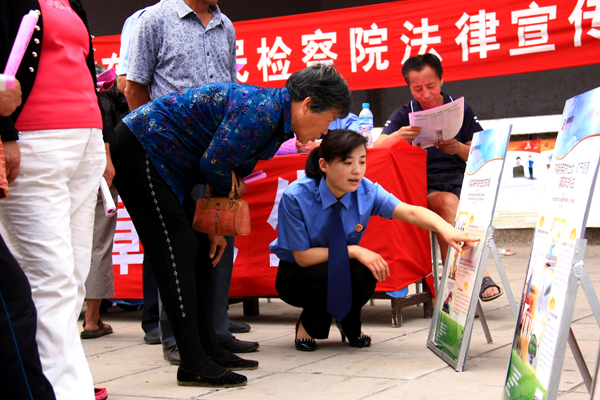河北省張家口市橋東區檢察院近日開展了以“懲防并舉,保障民生”為主題的法治宣傳活動,就政府征地、新型農村合作醫療、公共設施建設、政府相關農村各項補貼等方面可能涉及到的職務犯罪進行舉報宣傳,并為群眾提供法律咨詢。