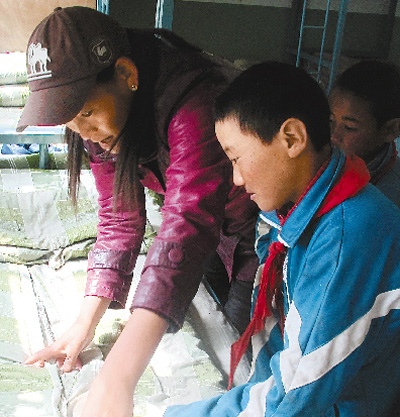 多年來,每當學生遇到困難時,白瑪?shù)录紩斐鰺崆橹謳椭麄儭R荒昙壍淖楷敗⑺髑粫匆路?白瑪?shù)录徒?jīng)常幫助她們換洗衣褲;五年級的扎西平措生病,白瑪?shù)录谜莆盏闹R幫他減輕痛苦……同事普布說:“她是既當老師又當保姆,這樣的故事多得說也說不完。”