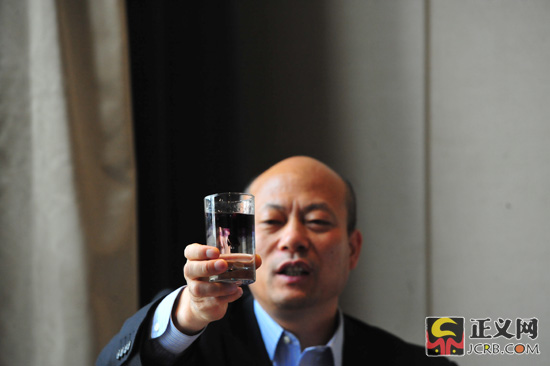 通過幾年的調查,朱張金發現,這些不法商人使用的違禁添加劑中,都包含對人體有害的染色劑和重金屬成分,他將這種非法添加劑稱為“毒品添加劑”。正義網記者程丁 攝