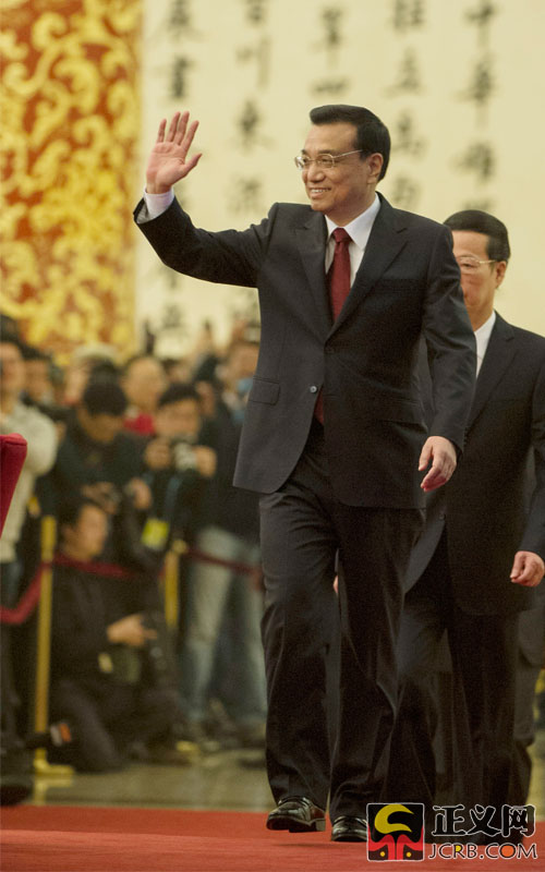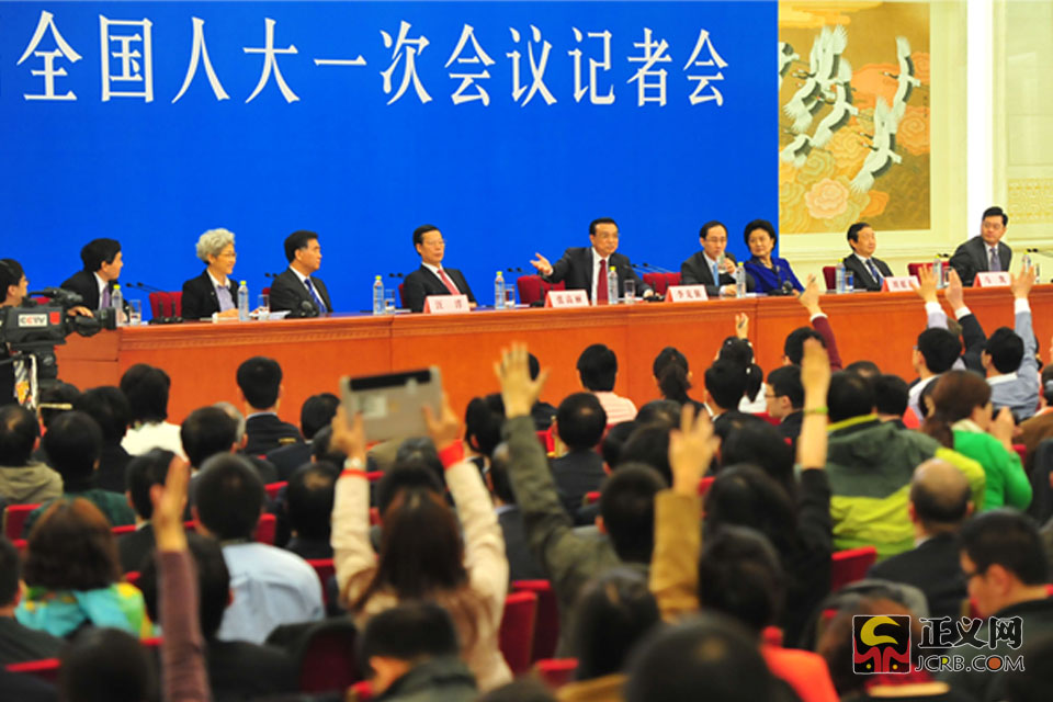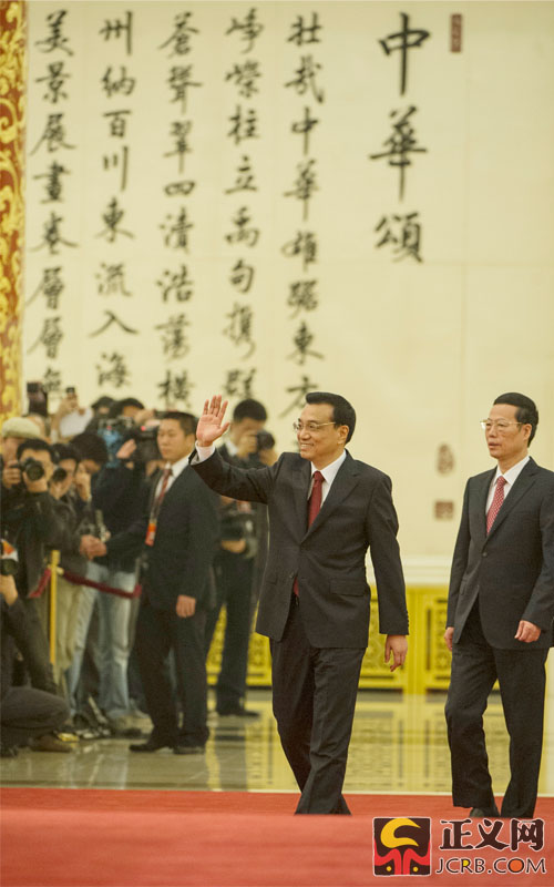 3月17日上午,十二屆全國人大一次會議閉幕后,國務院總理李克強在人民大會堂三樓金色大廳會見中外記者并回答記者提出的問題。正義網記者程丁攝