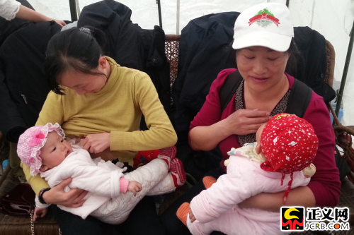 寶興檢察院案管中心副主任王曉玲(左)正在為群眾孩子哺乳。
