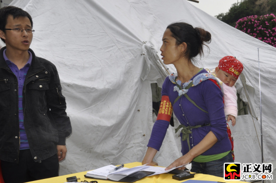 在抗震救災第一線,記者捕捉到了這樣三個身穿制服,佩戴檢徽,背上背著孩子的女檢察官的身影。“由于抗震救災工作時間緊、任務重,有的媽媽實在抽不出時間給孩子喂奶,這項任務就由其他媽媽代勞了”,一位正在給同事孩子喂奶的媽媽這樣說到。