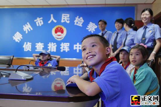 柳州市人民檢察院迎來了特殊的小客人。小客人在參觀柳州市人民檢察院偵查指揮中心。黃輝攝