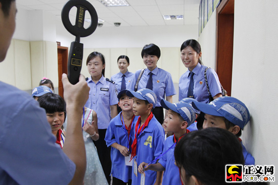 檢察干警在向小朋友們演示金屬探測器。黃輝攝