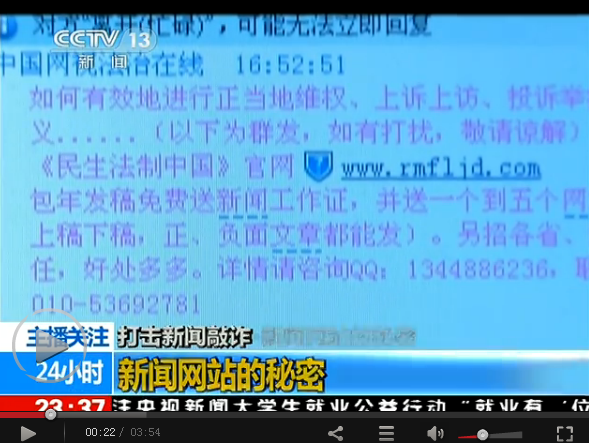 | “以真記者為依托,如果敲詐不成就在媒體上予以曝光,從事詐騙活動,是這類新聞敲詐行為的慣用伎倆!睋私,少數媒體片面追求經濟效益,隨意在基層設置分支機構、聘用人員,相關管理卻十分混亂。 |