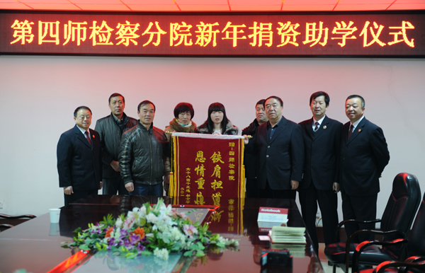2013年,新疆兵團(tuán)生產(chǎn)建設(shè)兵團(tuán)人民檢察院第四師分院黨支部在開(kāi)展黨的群眾路線教育實(shí)踐活動(dòng)中,通過(guò)走基層,了解到第四師68團(tuán)13連勾永江家因妻子疾病,造成兒女勾美妮上大學(xué)困難,院支部在院黨組支持下,通過(guò)社會(huì)力量籌集資金2萬(wàn)元以幫助勾美妮完成學(xué)業(yè)。2015年2月4日勾通過(guò)所在連隊(duì),與父母到分院來(lái)感謝檢察院叔叔阿姨們的幫助,并贈(zèng)送“鐵肩擔(dān)道義 恩情重如山”的錦旗以表真誠(chéng)的謝意。院黨組書記、檢察長(zhǎng)王玉杰同志借此再次向勾美妮捐助第三學(xué)年的學(xué)習(xí)費(fèi)用5000元。勾表示一定要好好學(xué)習(xí),絕不辜負(fù)檢察分院領(lǐng)導(dǎo)和同志們的關(guān)懷,學(xué)成后,回來(lái)為家鄉(xiāng)建設(shè)做出自己的努力。郭建忠 攝