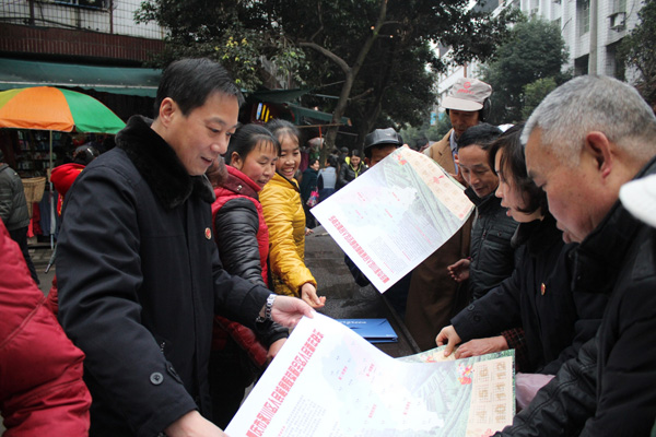 1月8日上午,重慶市永川區檢察院第一檢察室的干警來到陳食鎮芋荷灣村,趁著趕集天,為群眾發放印有檢察機關、檢察室職能職責及聯系方式的“檢民連心掛歷”。據悉,為進一步宣傳檢察室職能職責,該院四個派駐基層檢察室計劃從一月開始到春節前夕,對轄區內所有鎮街進行全覆蓋走訪,收集民情民意,將發放一萬份“檢民連心掛歷”。沈義 黃進 攝