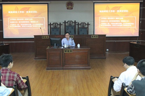 5月8日晚,結合開展黨的群眾路線教育實踐活動,應法學院邀請,剛剛榮獲全國模范檢察官殊榮的漳州市人民檢察院技術處正科級檢察員、副主任醫師劉龍清同志到我校為廣大師生作了一場題為“一刀一筆守公正——我的法醫學人生”先進事跡報告。法學院黨總支副書記林貴東主持了報告會,副院長何東平教授、黨員師生、法治漳州研究中心部分人員共300余人出席報告會。