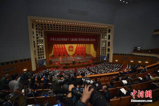 3月12日上午9時,第十二屆全國人民代表大會第三次會議在人民大會堂舉行第三次全體會議,聽取最高人民法院院長周強關于最高人民法院工作的報告,聽取最高人民檢察院檢察長曹建明關于最高人民檢察院工作的報告。中新社記者 金碩 攝