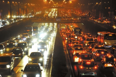 北京市東三環南北方向主輔路擁堵嚴重。(資料圖片)京華時報記者潘之望攝