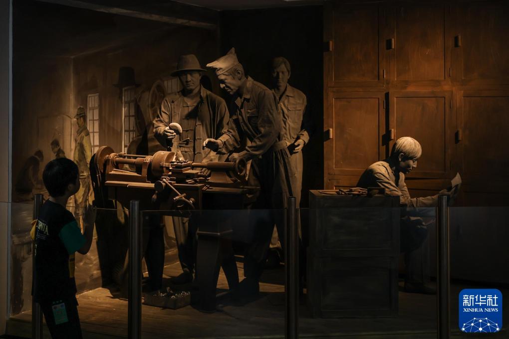 8月5日,小朋友在沈陽(yáng)二戰(zhàn)盟軍戰(zhàn)俘營(yíng)舊址陳列館內(nèi)觀看展品,展品所展示的內(nèi)容是關(guān)于中國(guó)工友對(duì)盟軍戰(zhàn)俘的幫助。