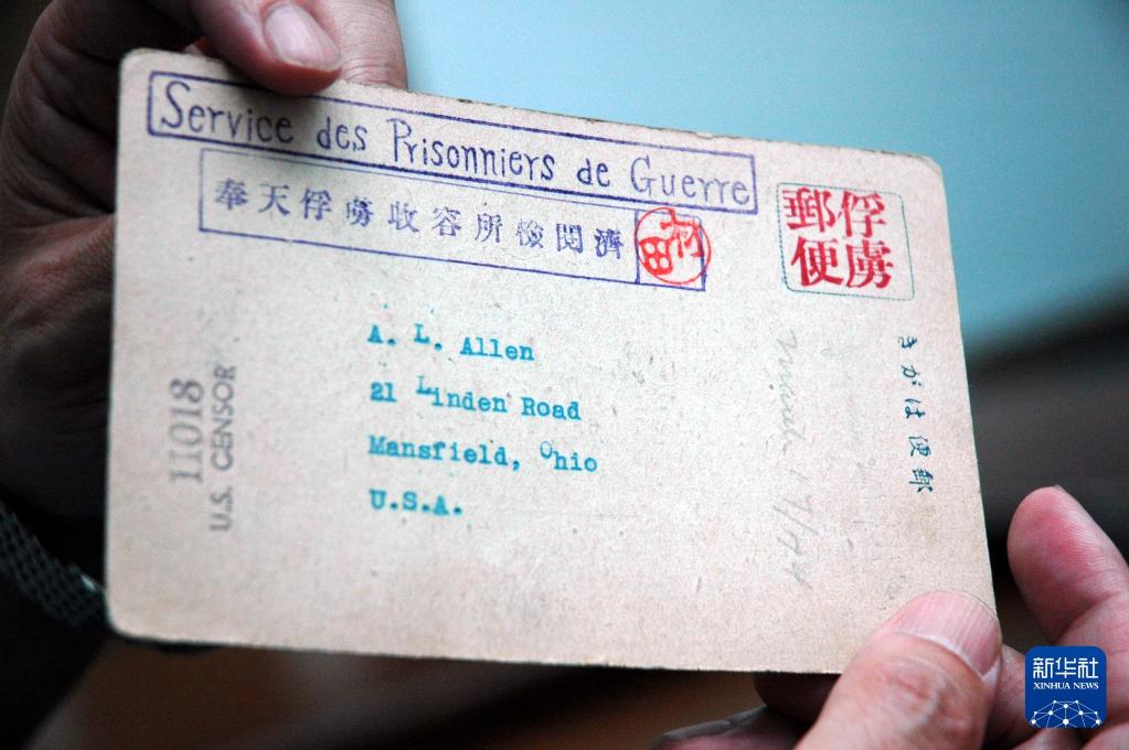 這是當(dāng)年戰(zhàn)俘們寄給親友的實(shí)寄明信片(2008年7月31日攝)。64開的明信片上有“俘虜郵便”“奉天俘虜收容所檢閱濟(jì)”的明顯印記,這些私人信件當(dāng)年要經(jīng)過(guò)日軍的嚴(yán)格審查,蓋上戰(zhàn)俘營(yíng)司令官松田的名章后才能寄出。2008年7月31日,200余件二戰(zhàn)時(shí)期美國(guó)老兵珍藏的文物史料,被捐贈(zèng)給沈陽(yáng)二戰(zhàn)時(shí)期盟軍戰(zhàn)俘營(yíng)舊址紀(jì)念館。