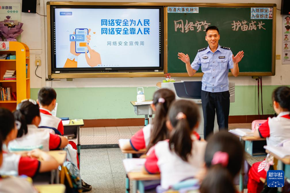 9月15日,民警在天津市濱海新區塘沽實驗小學為學生講解網絡安全知識。