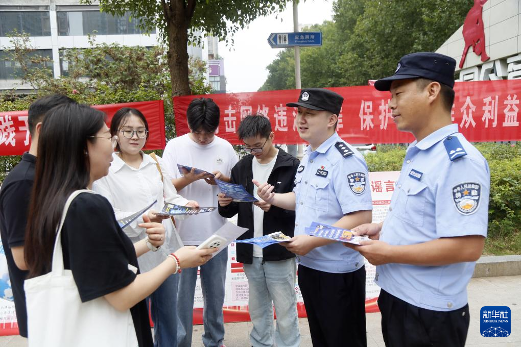 9月15日,河南省洛陽市汝陽縣公安局網絡安全保衛大隊民輔警在文化廣場為居民講解網絡安全知識。