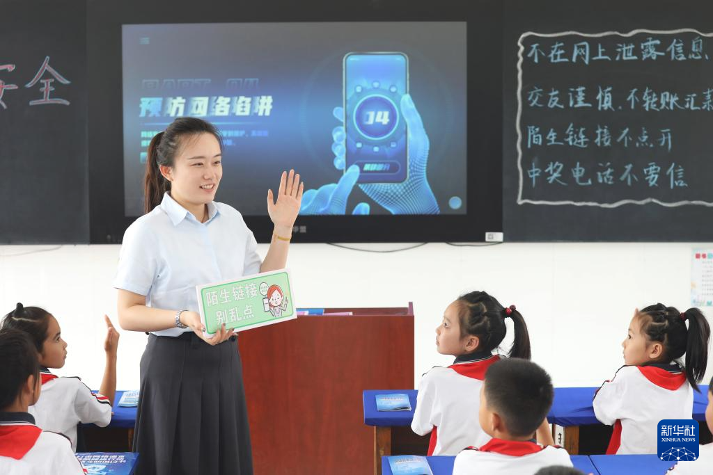 9月15日,河北省唐山市豐潤區泉河頭小學老師在給學生講解網絡安全知識。