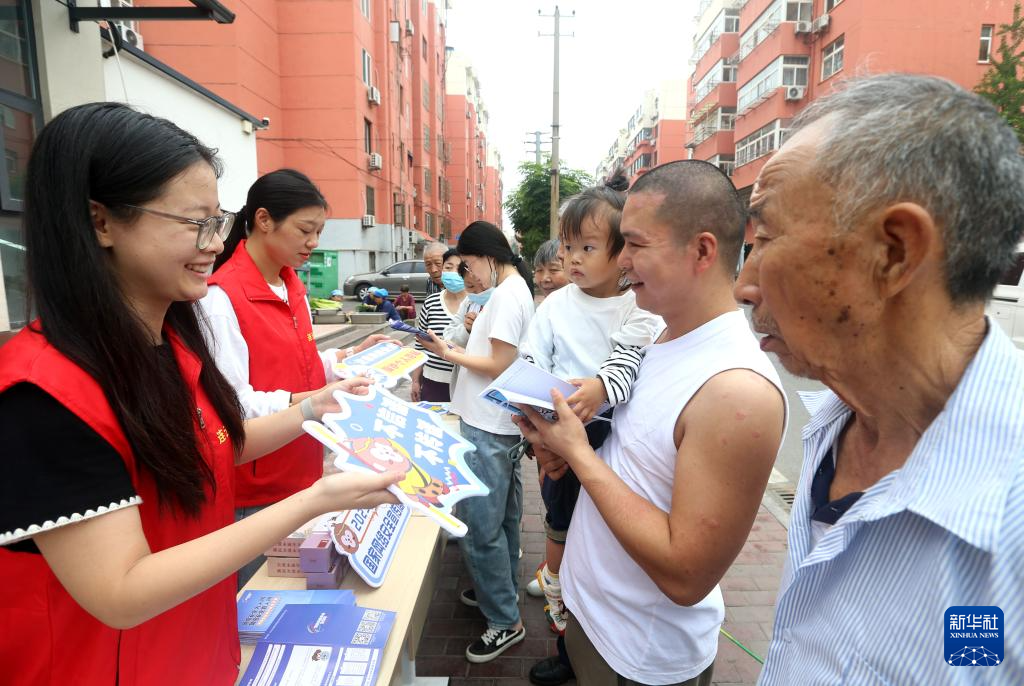 9月15日,河南省洛陽市汝陽縣工業信息化和商務局工作人員在文化廣場為居民講解網絡安全知識。