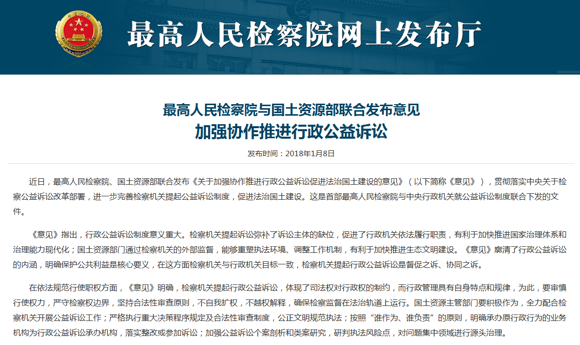 在依法規范行使職權方面,《意見》明確,檢察機關提起行政公益訴訟,體現了司法權對行政權的制約,而行政管理具有自身特點和規律,為此,要審慎行使權力,嚴守檢察權邊界,堅持合法性審查原則,不自我擴權,不越權解釋,確保檢察監督在法治軌道上運行。國土資源主管部門要積極作為,全力配合檢察機關開展公益訴訟工作。