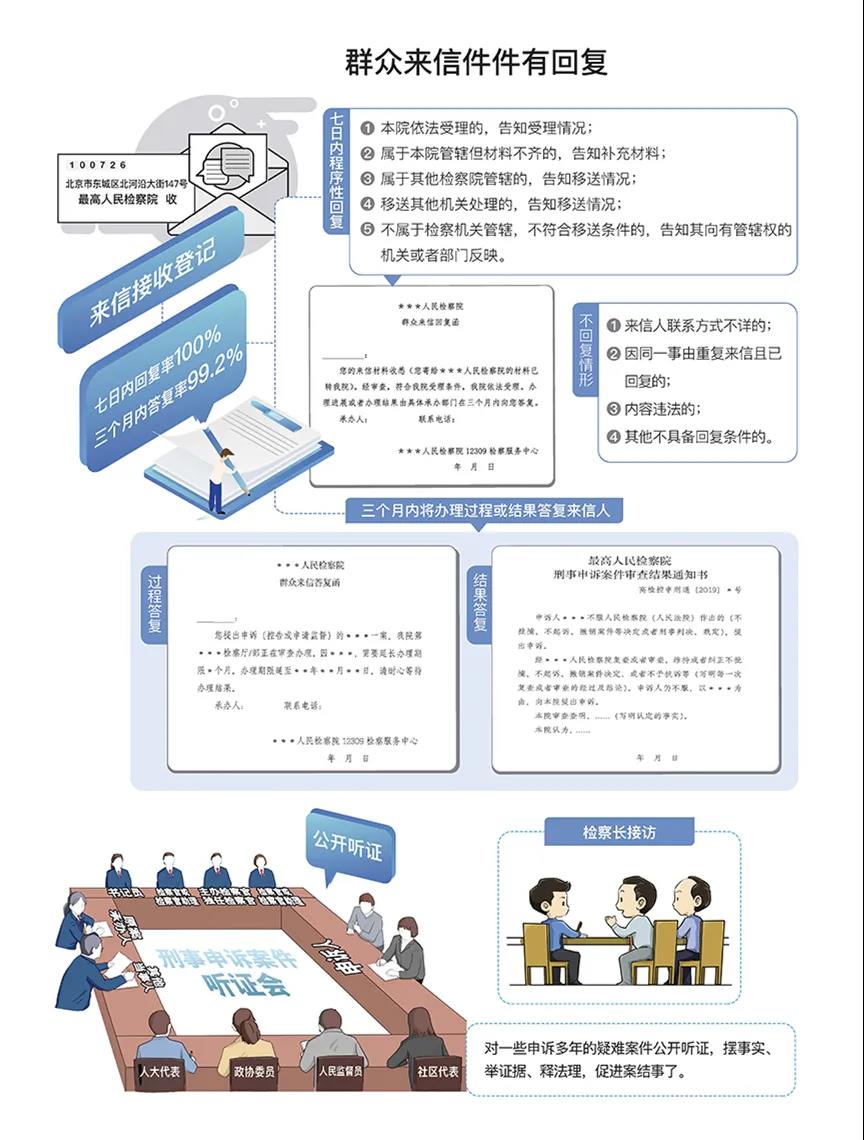 用真情落實(shí)群眾來(lái)信件件回復(fù)制度。關(guān)乎人民群眾的揪心事,人手再緊也要做到,工作再難也要做好。全國(guó)檢察機(jī)關(guān)新收群眾來(lái)信491829件,均在7日內(nèi)告知“收到了、誰(shuí)在辦”;3個(gè)月內(nèi)辦理過(guò)程或結(jié)果答復(fù)率99.2%。件件回復(fù)不是關(guān)鍵,案結(jié)事了才是根本。四級(jí)檢察長(zhǎng)接待信訪群眾16135次。邀請(qǐng)人大代表、政協(xié)委員、人民監(jiān)督員、社區(qū)代表等對(duì)1244件申訴多年的疑難案件公開(kāi)聽(tīng)證,擺事實(shí)、舉證據(jù)、釋法理。去年底又開(kāi)通聯(lián)網(wǎng)辦信,流轉(zhuǎn)、查詢、反饋全程提速。