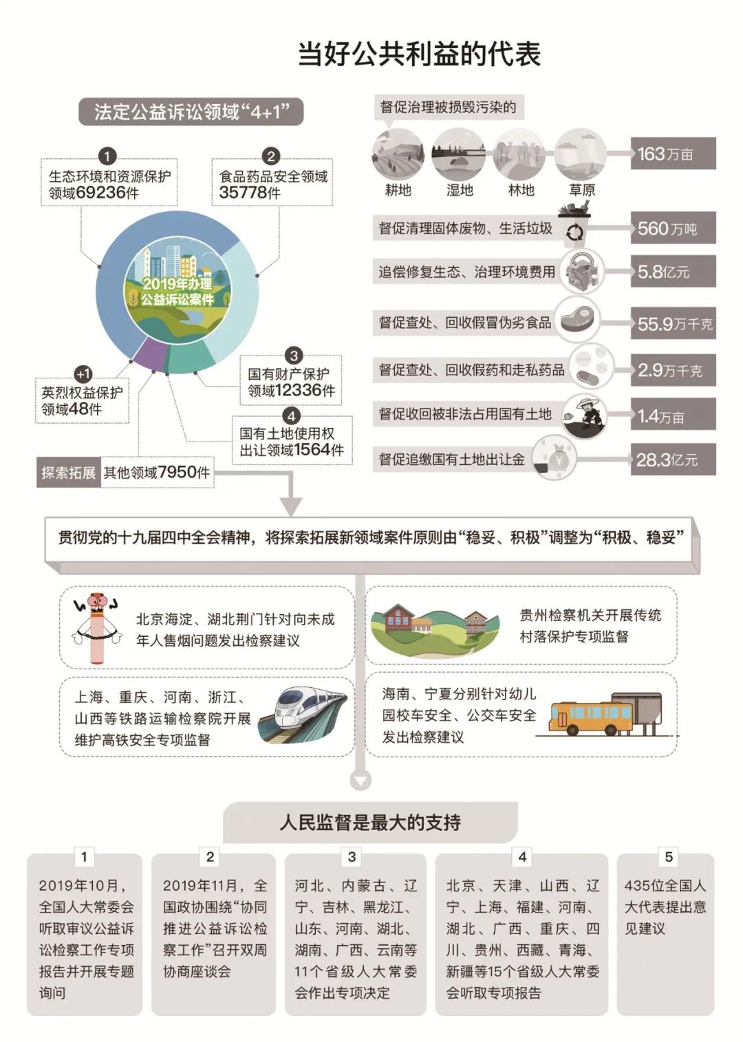 努力做好公益訴訟檢察。牢記檢察官公共利益代表的神圣職責(zé),深化雙贏多贏共贏理念,辦理民事公益訴訟7125件、行政公益訴訟119787件,同比分別上升62.2%和10.1%。堅(jiān)持把訴前實(shí)現(xiàn)維護(hù)公益目的作為最佳司法狀態(tài)。檢察機(jī)關(guān)與政府部門雖分工不同,但服務(wù)人民、追求法治的目標(biāo)一致,公益訴訟并非“零和博弈”。推廣福建、山東等地圓桌會(huì)議和公開(kāi)送達(dá)機(jī)制,形成整改合力。對(duì)2018年辦理的10萬(wàn)余件訴前檢察建議落實(shí)情況“回頭看”,發(fā)現(xiàn)逾期未回復(fù)、實(shí)際未整改、整改不徹底的8751件,跟進(jìn)督促履職。2019年發(fā)出的103076件訴前檢察建議回復(fù)整改率87.5%,絕大多數(shù)問(wèn)題在訴前得以解決,以最小司法投入獲得最佳社會(huì)效果。黑龍江省人民檢察院專項(xiàng)調(diào)查二次供水安全狀況,向省政府發(fā)出檢察建議后得到高度重視,促進(jìn)了整改落實(shí)。對(duì)發(fā)出公告和檢察建議后公益受損未能解決的,提起公益訴訟4778件,同比上升48%。法院已審結(jié)3238件,支持起訴意見(jiàn)3225件。積極、穩(wěn)妥拓展辦案范圍。對(duì)法律明確賦權(quán)領(lǐng)域之外人民群眾反映強(qiáng)烈的公益損害問(wèn)題,探索立案7950件。北京海淀、湖北荊門等地檢察機(jī)關(guān)針對(duì)校園周邊商戶向孩子售煙問(wèn)題發(fā)出檢察建議,督促職能部門履職;國(guó)家衛(wèi)健委等8部委主動(dòng)深化青少年控?zé)煵渴稹9嬖V訟檢察工作得到各級(jí)人大重視支持。全國(guó)人大常委會(huì)聽(tīng)取審議專項(xiàng)報(bào)告并進(jìn)行專題詢問(wèn),435位全國(guó)人大代表提出意見(jiàn)建議;15個(gè)省級(jí)人大常委會(huì)聽(tīng)取專項(xiàng)報(bào)告,11個(gè)省級(jí)人大常委會(huì)作出專項(xiàng)決定,給予有力監(jiān)督支持。