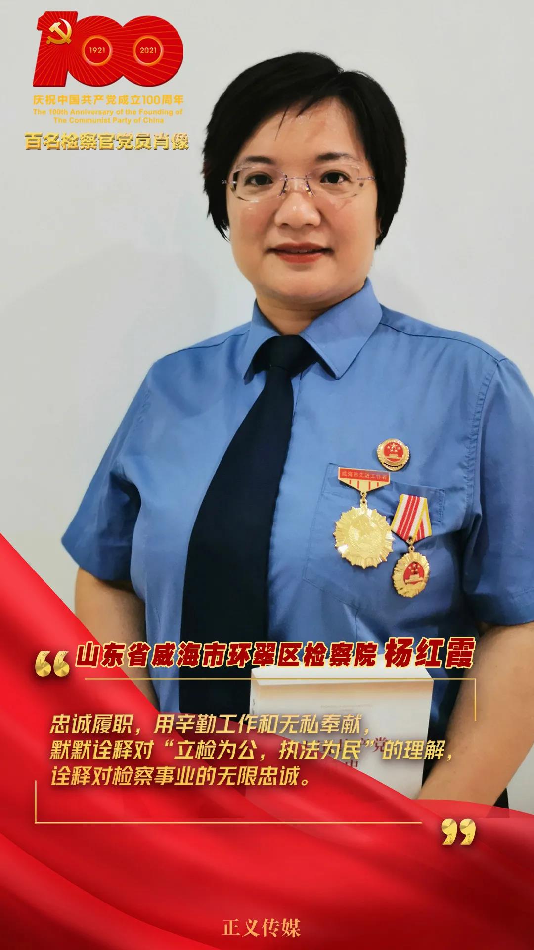 楊紅霞榮獲齊魯最美檢察官、山東省優秀檢察官、省政法人物、威海市十大政法人物、市優秀共產黨員、市先進工作者等稱號,多次被威海市檢察院嘉獎,并記個人三等功。其所在的控申科連續兩屆被最高檢授予“全國檢察機關文明接待室”榮譽稱號。
