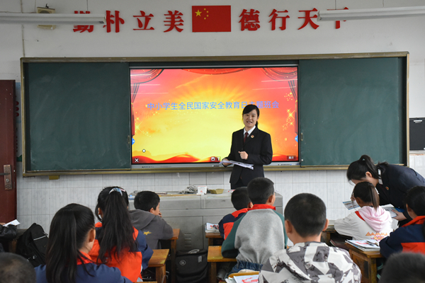 ■大家好,我是來自四川省夾江縣第一小學校2017級6班的黃小睿,今年12歲。校園中,我時常能看見一個匆忙的身影,穿梭在操場或是走廊,有時又會出現(xiàn)在教室的講臺上。班主任向同學們介紹說,她就是夾江縣檢察院第一檢察部的檢察官安合紅,同時也是我們學校的法治副校長。今年的4月15日是全民國家安全教育日,安合紅副校長走進我們班,帶來了一堂精彩的國家安全法治課。
