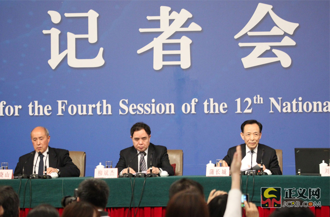 十二屆全國人大四次會議于3月11日下午在梅地亞中心多功能廳舉行記者會,邀請全國人大教育科學文化衛生委員會主任委員柳斌杰、全國人大環境與資源保護委員會委員蒲長城、全國人大農業與農村委員會委員張曉山、全國人大常委會預算工作委員會副主任劉修文、全國人大常委會辦公廳秘書局巡視員傅文杰就“人大監督工作”的相關問題回答中外記者的提問。正義網記者徐伯黎 攝
