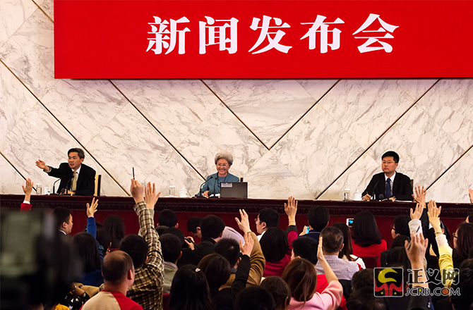 3月4日,十二屆全國人大四次會議在人民大會堂舉行新聞發布會,大會發言人傅瑩回答中外記者的提問。本次發布會共有18名中外記者提問,其中11位記者提問涉及法治話題,占提問總數的61%。民法典的編纂工作、慈善法、推進全面依法治國、全國人大審議境外非政府組織管理法草案、全國人大立法、反腐敗、《中華人民共和國反家庭暴力法》、稅收法、涉黃涉毒或者微博禁言的演員、政府依法行政、《大氣污染防治法》等。正義網記者程丁攝