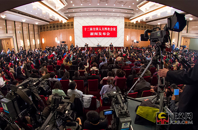 3月4日,十二屆全國人大四次會議在人民大會堂舉行新聞發(fā)布會,大會發(fā)言人傅瑩回答中外記者的提問。本次發(fā)布會共有18名中外記者提問,其中11位記者提問涉及法治話題,占提問總數(shù)的61%。民法典的編纂工作、慈善法、推進全面依法治國、全國人大審議境外非政府組織管理法草案、全國人大立法、反腐敗、《中華人民共和國反家庭暴力法》、稅收法、涉黃涉毒或者微博禁言的演員、政府依法行政、《大氣污染防治法》等。正義網(wǎng)記者程丁攝